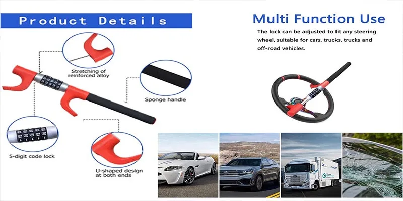 O corpo do fechamento é feito da liga reforçada, que é anti-corte, anti-perfuração, anti-serra, e anti-curiosos. Geralmente usado para volantes de carro, fácil de instalar e usar.